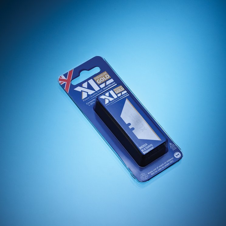 XL Premium Gold Medium Duty Trimmer Blades. Made From High Quality 1.25% Carbon Steel With a Polished Finish Featuring a TiN Coated Cutting Edge. The Titanium Nitride (TiN) Coating improves wear resistance and extends blade life. This is ideal for preventing breaking when cutting through those more abrasive materials.